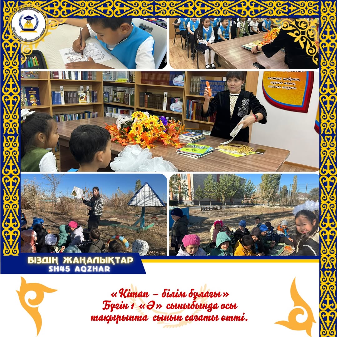 Мақсаты: Оқушылар кітаптың тарихымен танысып, оны күтіп ұстау ережелерін үренді.Әрқайсысы өз ойларын сурет арқылы бейнелеп, шығармашылық қабілеттерін көрсетті.Сабақ соңында балалар кітапханаға барып,өздеріне ұнаған ертегі кітап таңдап алып, мектеп ауласында мұғалімнің оқуымен ертегі тыңдап, ерекше әсер алды.